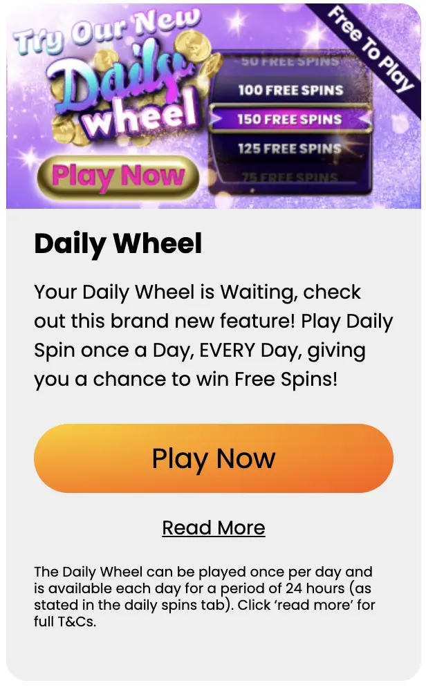 Weekly Reload 50 FS: Deposit at least £30 to get 50 FS. You can claim this offer once a week between Monday and Friday. The FS winnings are subject to a 40x playthrough condition that benefactors must clear within 10 days.