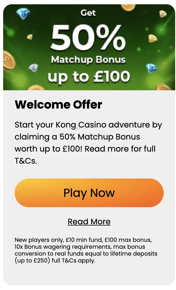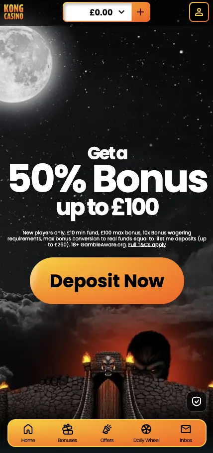 Players who gamble with the Casino Kong app can claim the 100% welcome bonus up to £750, 50 FS weekly reload and 15% cashback offers. Playing with the software does not restrict you from enjoying the bonuses that PC users access. In fact, you may benefit from mobile-exclusive gifts.