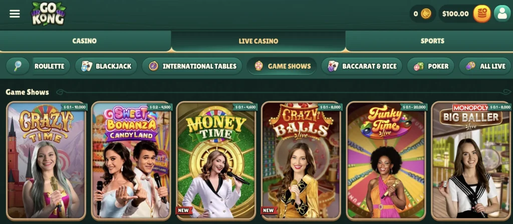 Many of Kong live games are classic and improved roulette from different reputable providers. Gold Saloon Roulette, Fortune Roulette and Mega Roulette are some well-designed games that offer true value. There are over 100 distinct varieties, each connecting you to a real gaming room following launch.